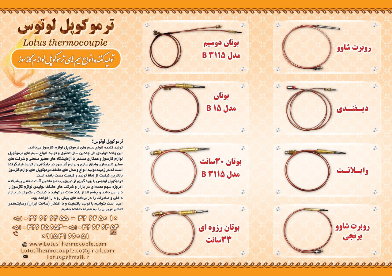 این مجموعه تولیدی در زمینه ی تولید انواع سیم ترموکوپل که یکی از اصلی ترین قطعات لوازم گازسوز (مثل ابگرمکن و بخاری) می باشد، فعالیت دارد و با استفاده از توانمندی و تجربه ی خود و با هدف ارائه انواع سیم ترموکوپل مرغوب، با کیفیت و استاندارد می کوشد رضایت هرچه بیشتر مصرف کنندگان بخش خانگی و همین طور تولید کنندگان صنعتی لوازم گاز سوز را بدست آورد.